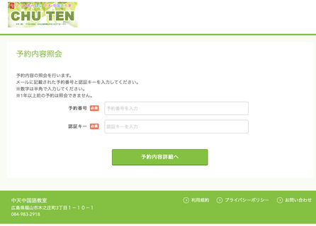 赤い線の【予約内容照会画面】のURLアドレスから 画面にお進み、予約内容をご確認が出来ます。