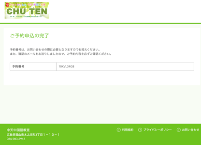 5)ご予約申込の完了ページが表示されます。